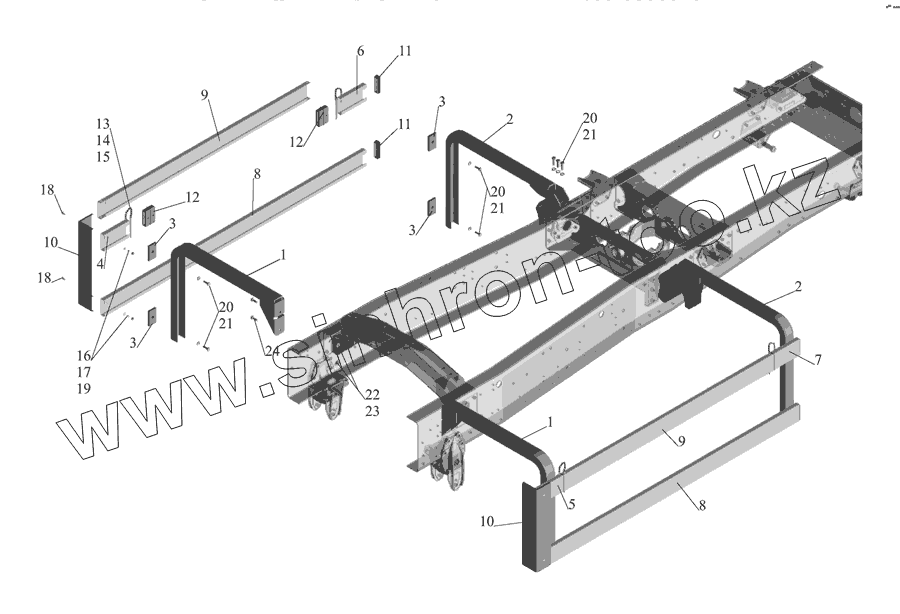Каталог запасных частей к технике: МАЗ-555142. Установка бокового ограждения 555102-2800040