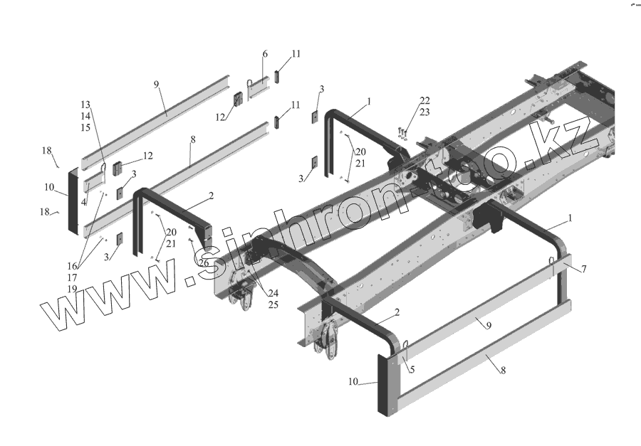 Каталог запасных частей к технике: МАЗ-555142. Установка бокового ограждения 555142-2800040
