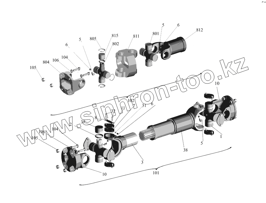 Каталог запасных частей к технике: МАЗ-555142. Установка карданной передачи