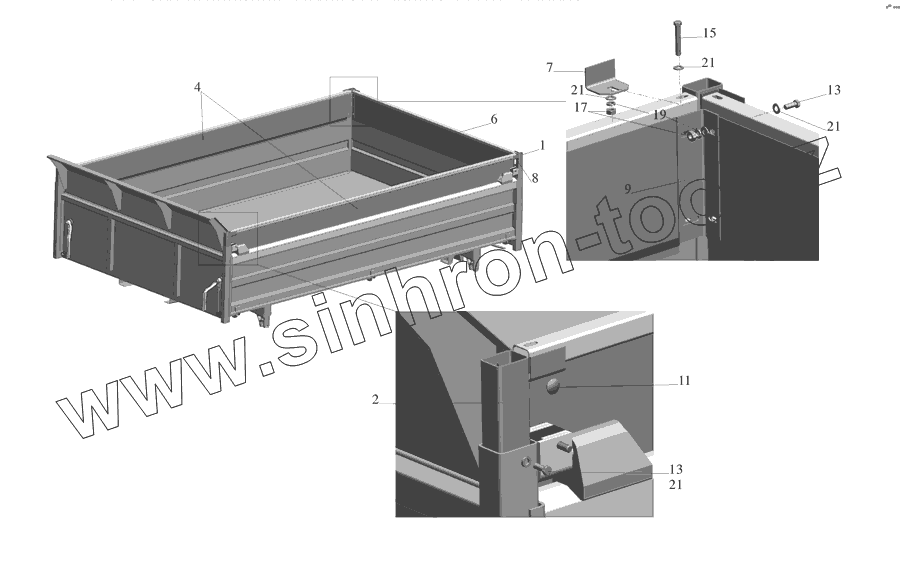 Каталог запасных частей к технике: МАЗ-555142. Установка надставных бортов 555102-8500012
