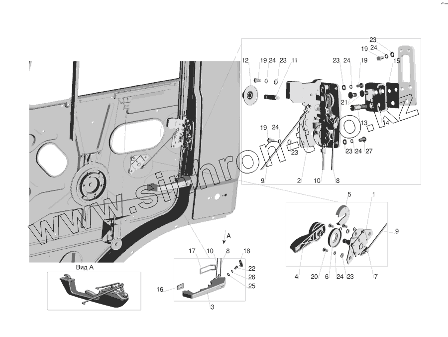 Каталог запасных частей к технике: МАЗ-555142. Установка наружной ручки и замка двери