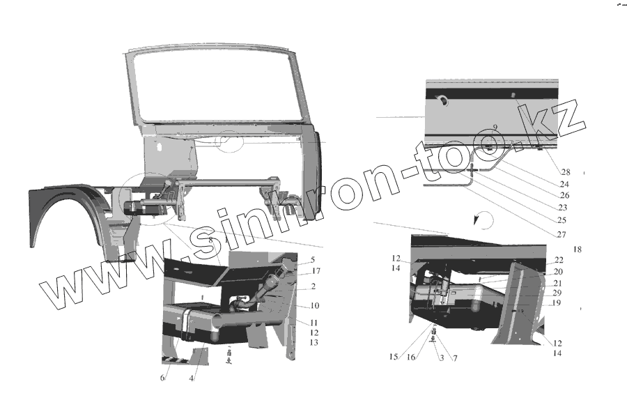 Каталог запасных частей к технике: МАЗ-555142. Установка омывателя