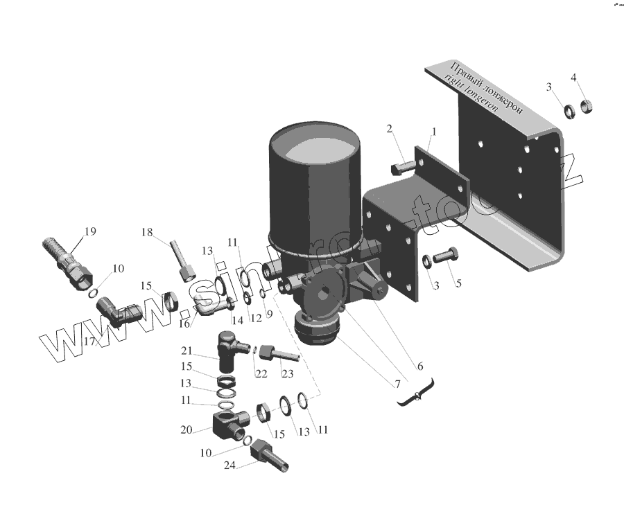 Каталог запасных частей к технике: МАЗ-555142. Установка осушителя воздуха 5551-3536004