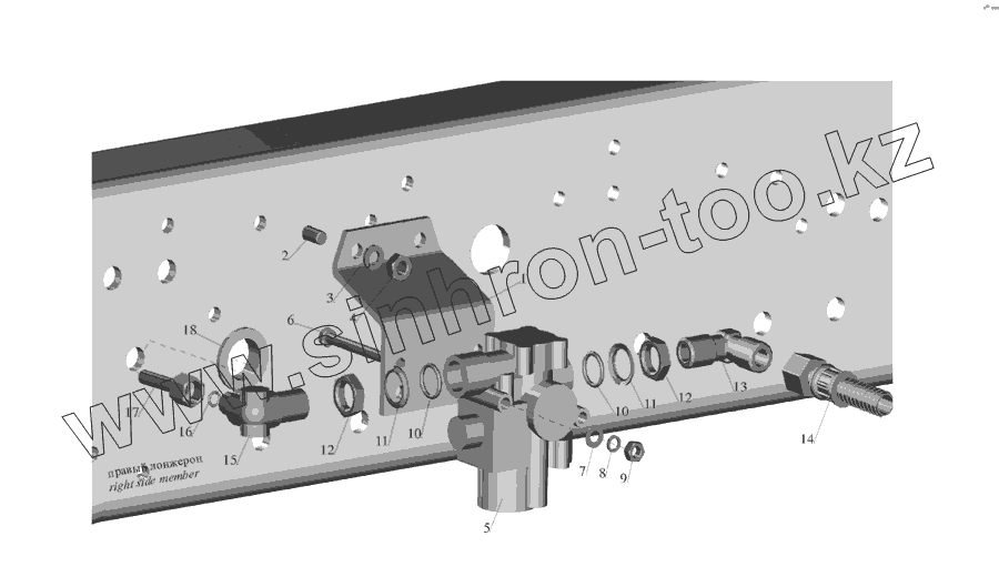 Каталог запасных частей к технике: МАЗ-555142. Установка передних модуляторов и присоединительной арматуры