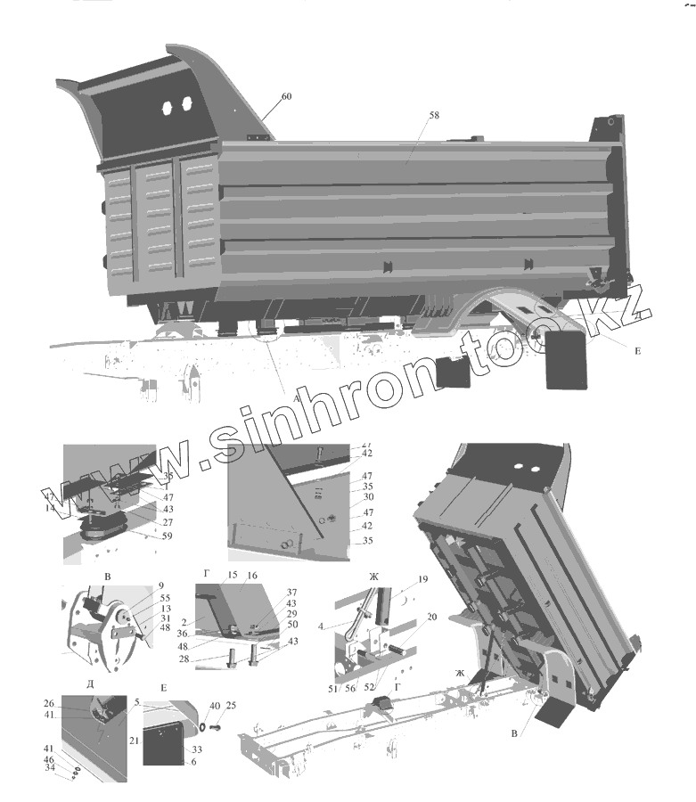 Каталог запасных частей к технике: МАЗ-555142. Установка платформы 555102-8500002-010