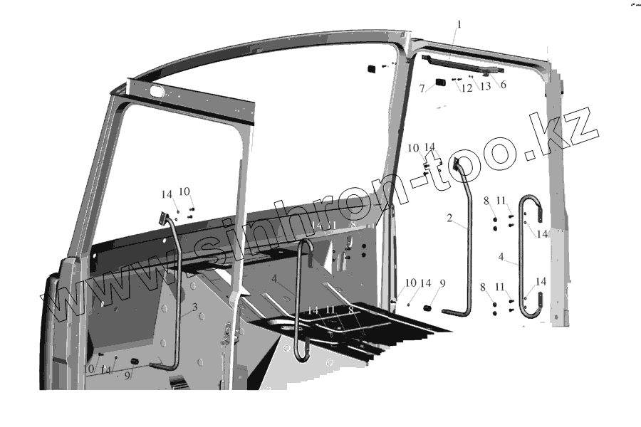 Каталог запасных частей к технике: МАЗ-555142. Установка поручней в кабине