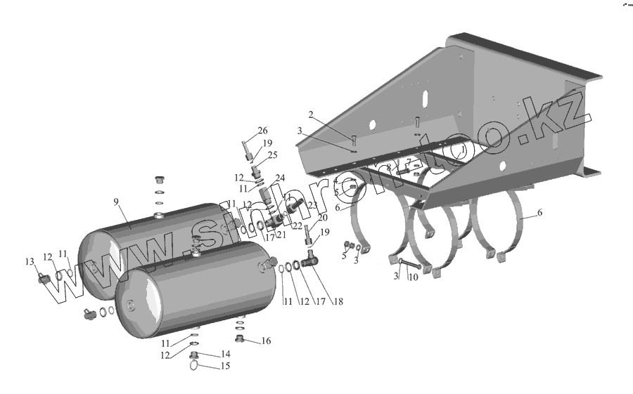 Каталог запасных частей к технике: МАЗ-555142. Установка ресивера 555102-3513006