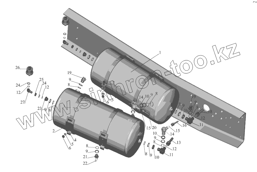 Каталог запасных частей к технике: МАЗ-555142. Установка ресиверов 5551-3513004