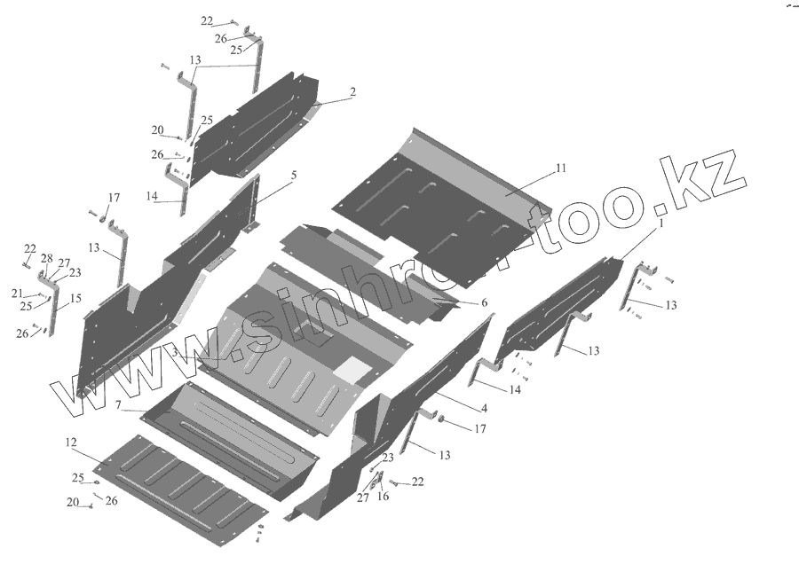 Каталог запасных частей к технике: МАЗ-555142. Установка шумоизоляционных экранов 555142-1061004