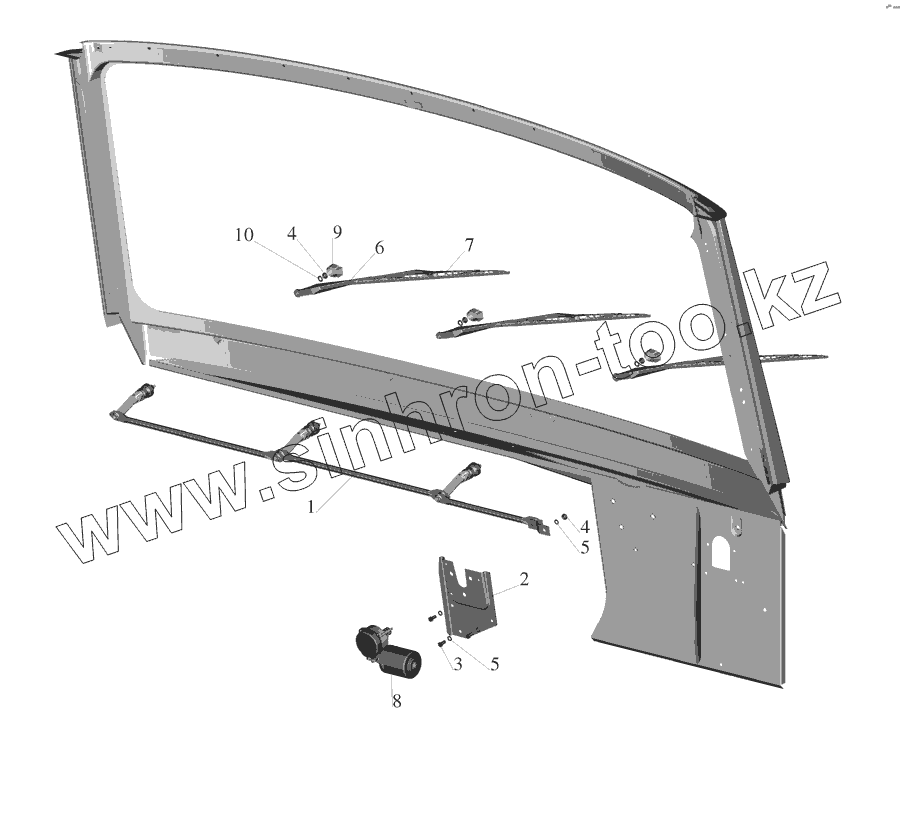 Каталог запасных частей к технике: МАЗ-555142. Установка стеклоочистителя 64221-3700041-010