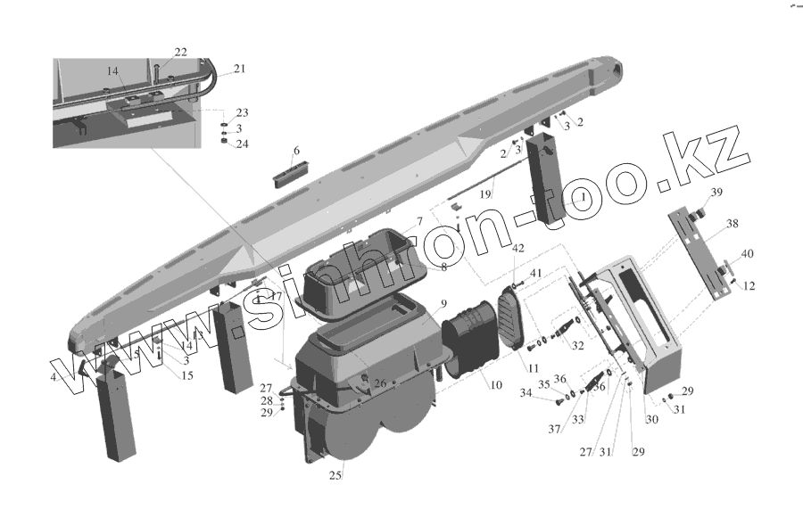 Каталог запасных частей к технике: МАЗ-555142. Установка воздушных заслонок и отопителя кабины