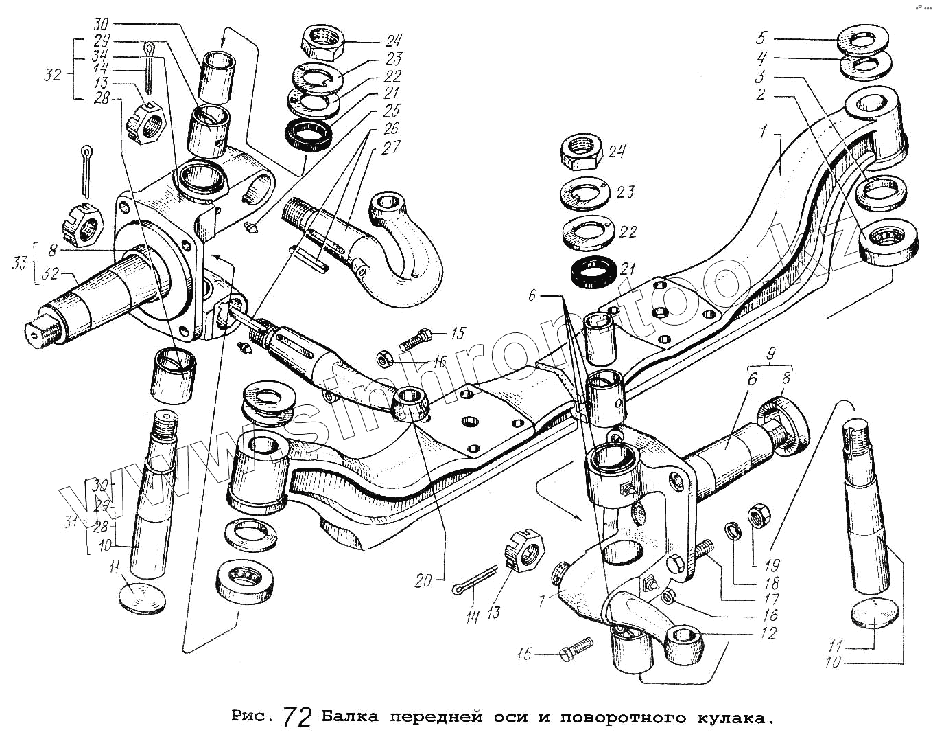 Каталог запасных частей к технике: МАЗ-5551. Балка передней оси и поворотного кулака