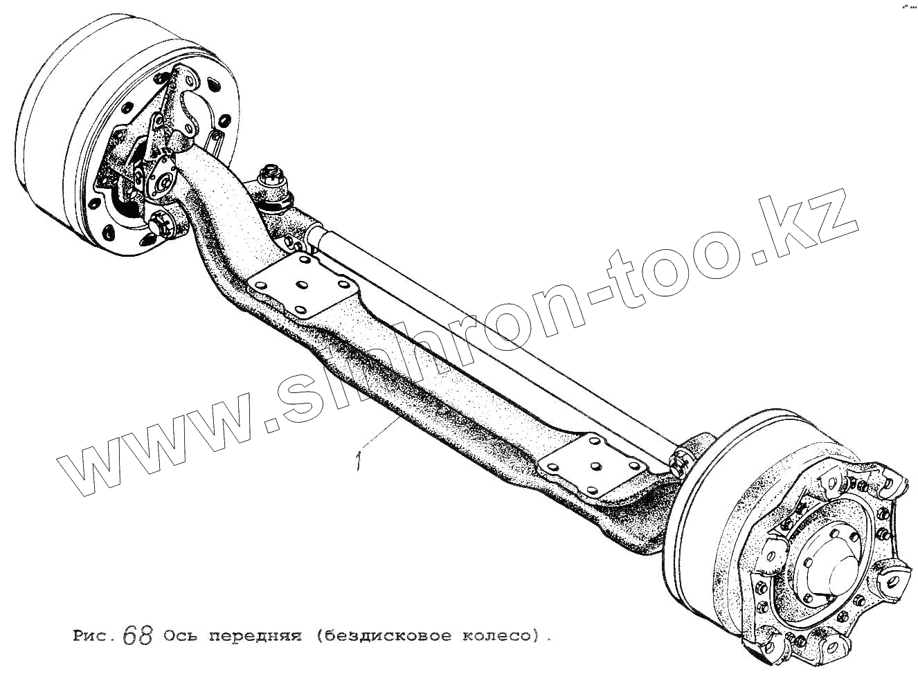 Каталог запасных частей к технике: МАЗ-5551. Ось передняя (бездисковое колесо)