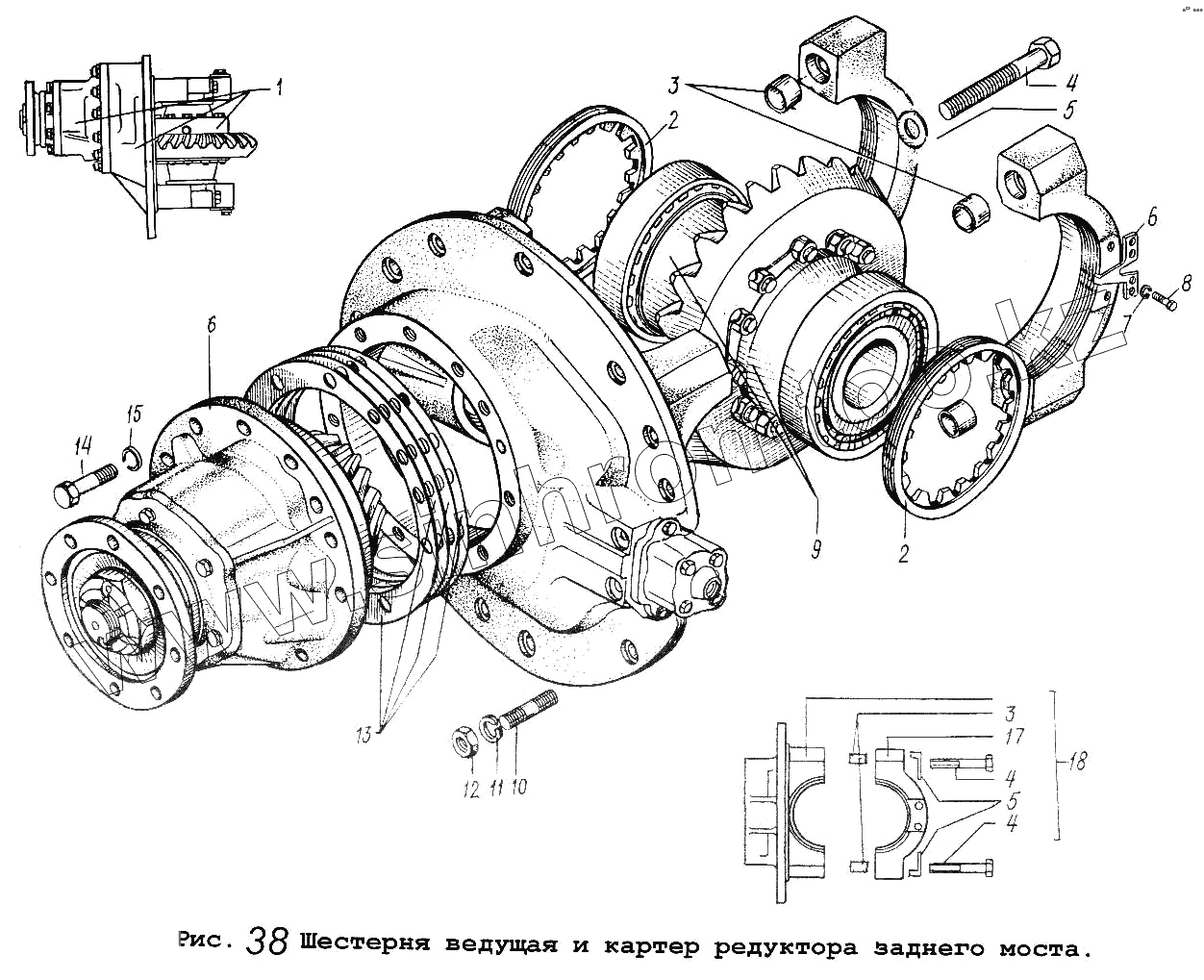 Каталог запасных частей к технике: МАЗ-5551. Шестерня ведущая и картер заднего моста