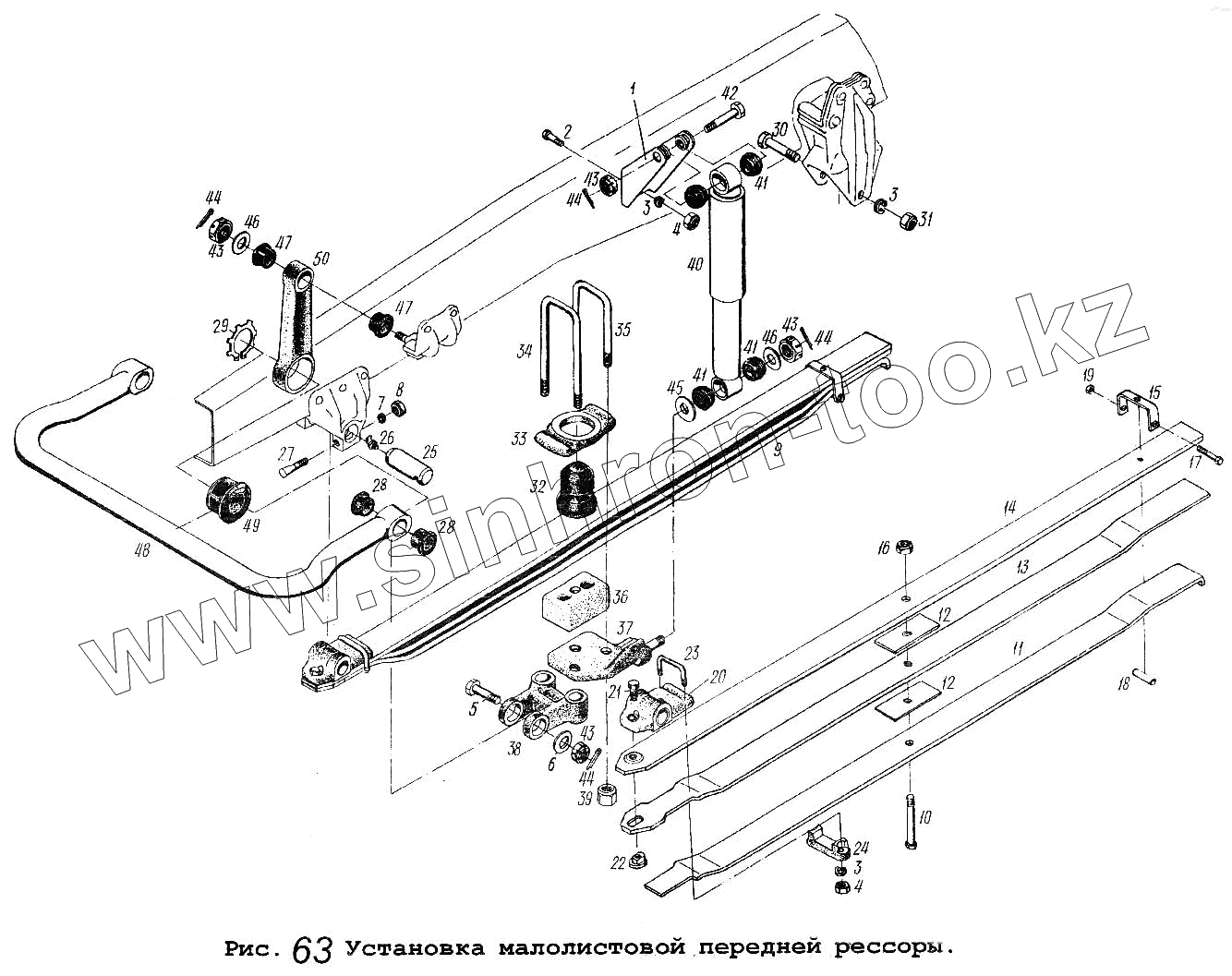 Каталог запасных частей к технике: МАЗ-5551. Установка малолистовой передней рессоры