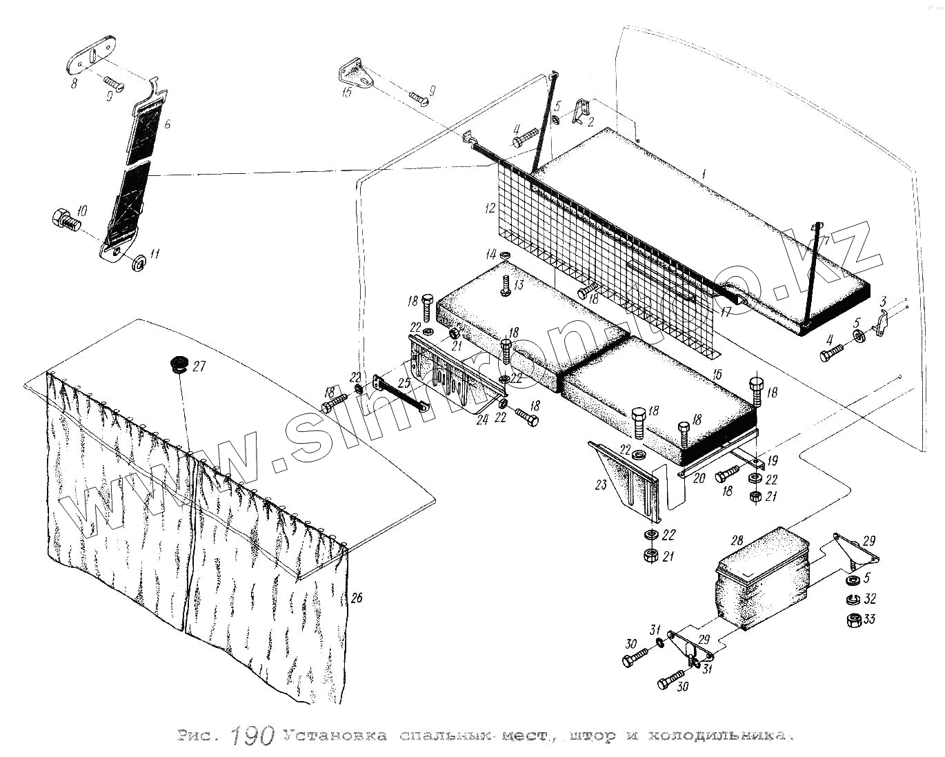 Каталог запасных частей к технике: МАЗ-5551. Установка спальных мест, штор и холодильника