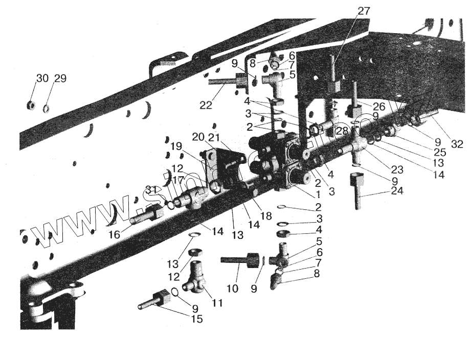 Каталог запасных частей к технике: МАЗ-5551 (2003). Крепление четырехконтурного клапана МАЗ-642208, 642205