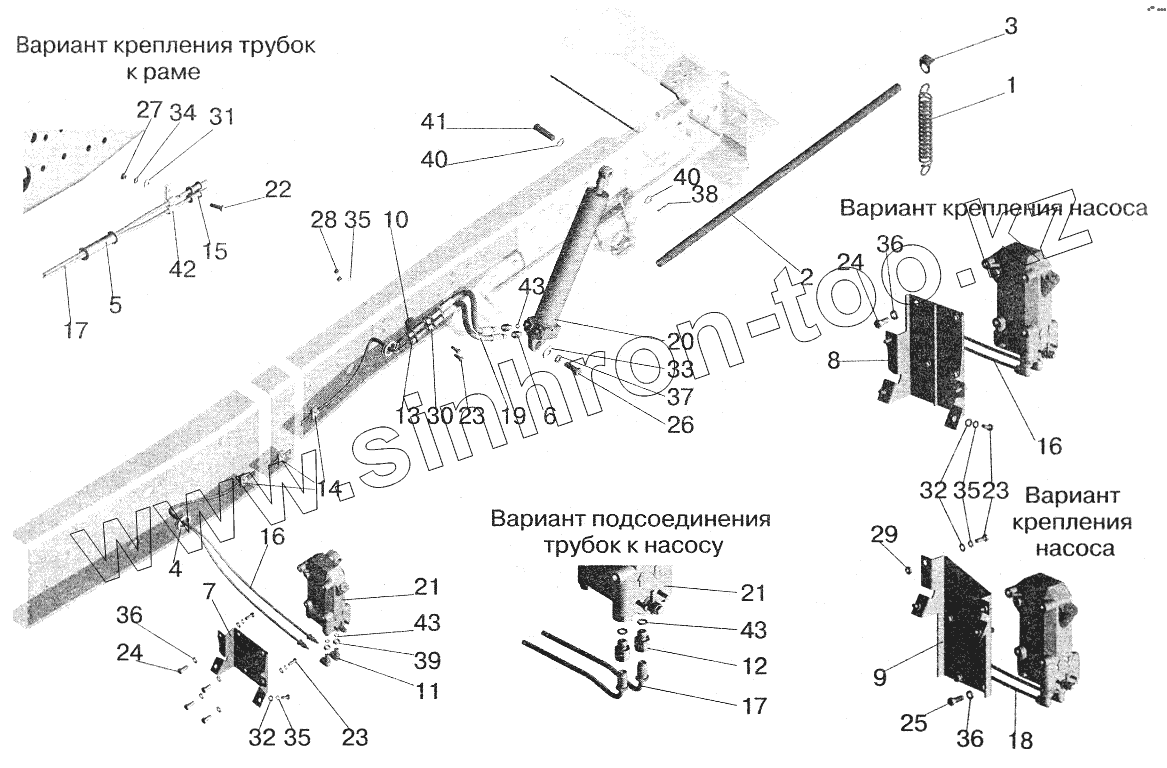 Каталог запасных частей к технике: МАЗ-5551 (2003). Механизм подъема кабины