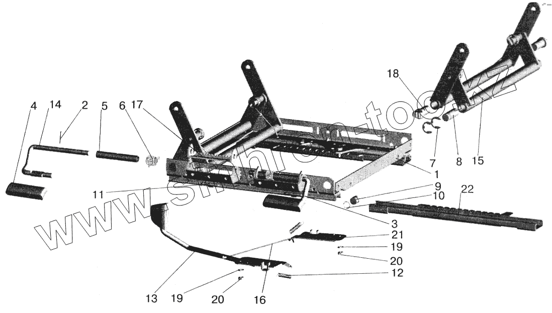 Каталог запасных частей к технике: МАЗ-5551 (2003). Механизм регулирования высоты