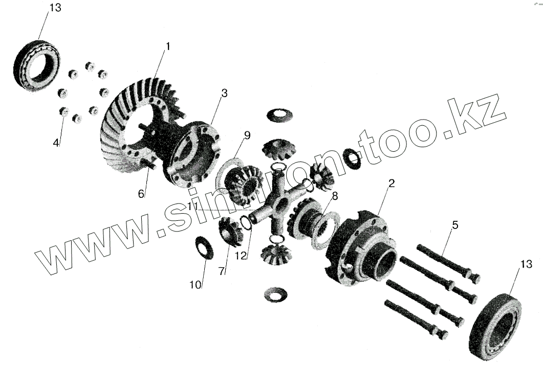Каталог запасных частей к технике: МАЗ-5551 (2003). Мост задний МАЗ-543208. Дифференциал