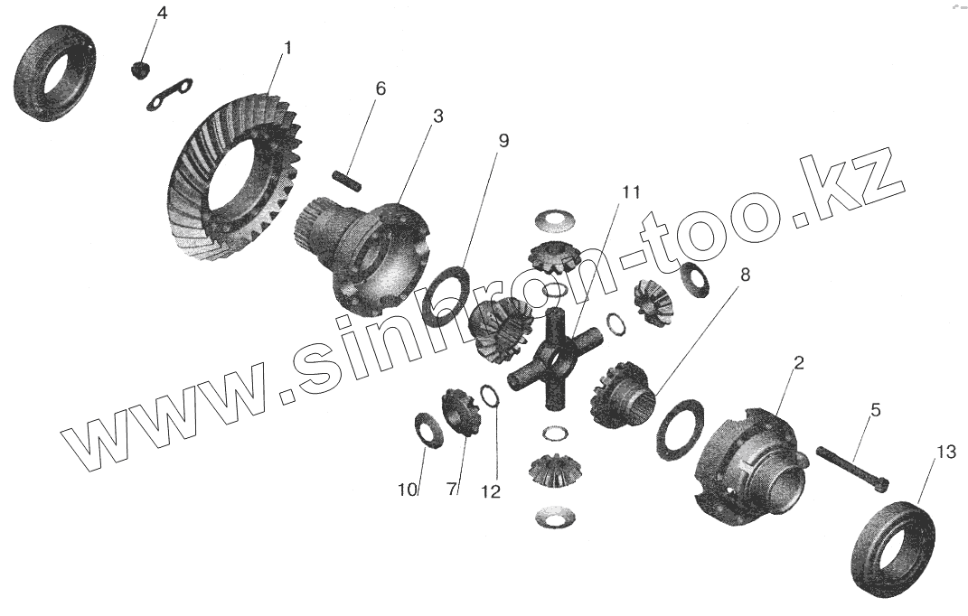 Каталог запасных частей к технике: МАЗ-5551 (2003). Редуктор среднего моста. Дифференциал