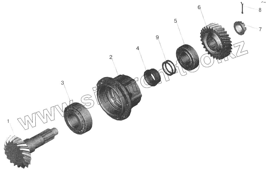 Каталог запасных частей к технике: МАЗ-5551 (2003). Редуктор среднего моста. Шестерня ведущая