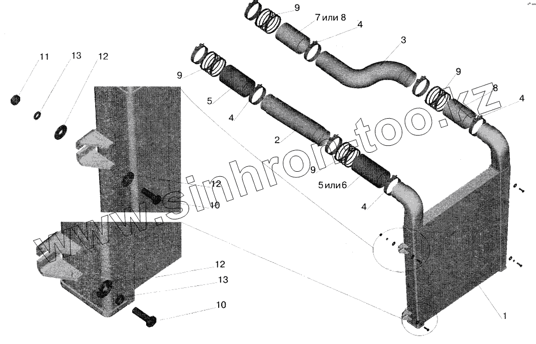 Каталог запасных частей к технике: МАЗ-5551 (2003). Система охлаждения наддувочного воздуха