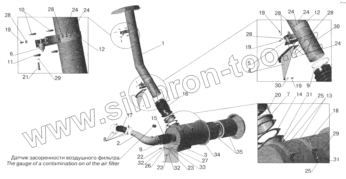 Каталог запасных частей к технике: МАЗ-5551 (2003). Система питания воздухом МАЗ-551605