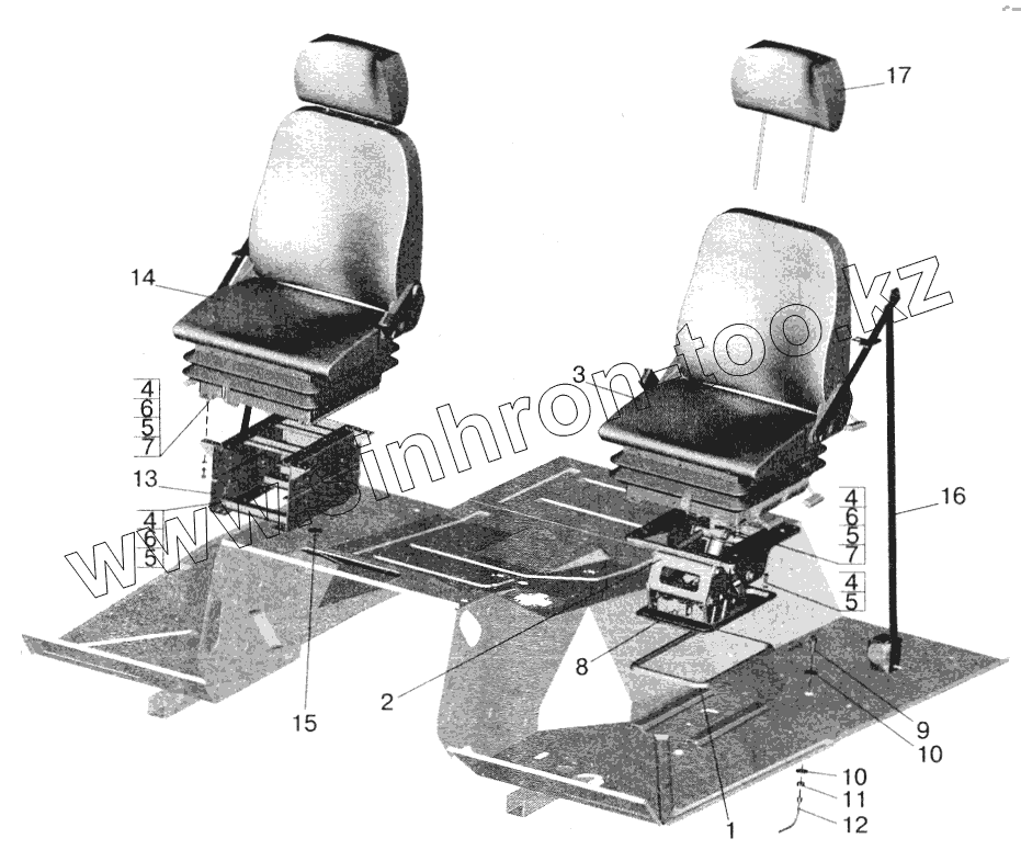 Каталог запасных частей к технике: МАЗ-5551 (2003). Установка и пневмопитание сидений 5433-6800006