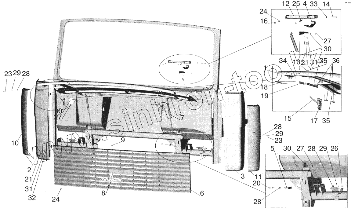 Каталог запасных частей к технике: МАЗ-5551 (2003). Установка облицовки и боковых щитков