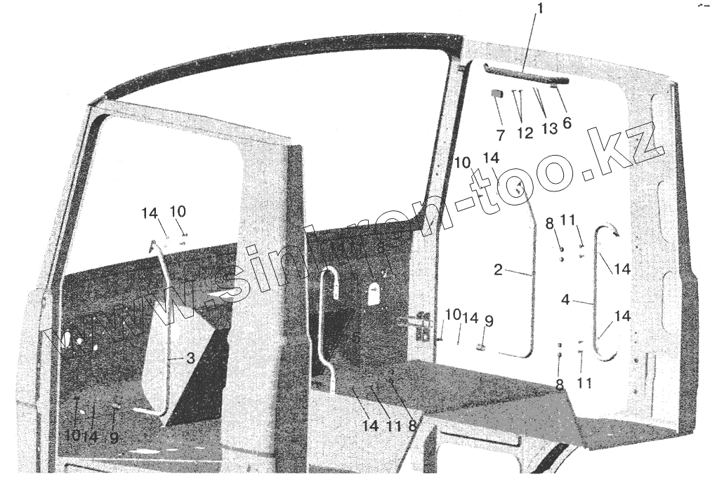 Каталог запасных частей к технике: МАЗ-5551 (2003). Установка поручней в кабине