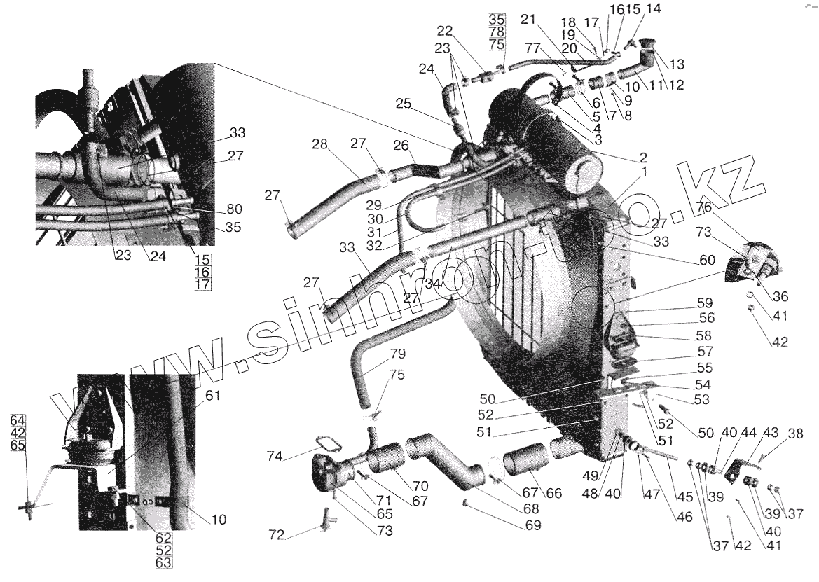 Каталог запасных частей к технике: МАЗ-5551 (2003). Установка системы охлаждения МАЗ-642208, 543208