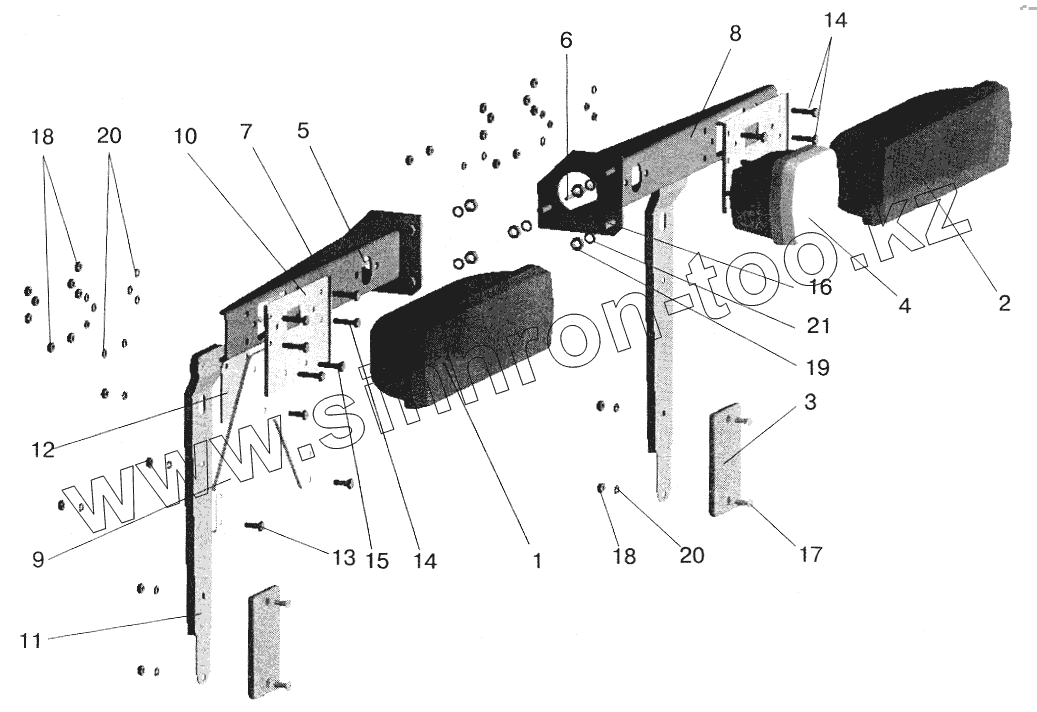 Каталог запасных частей к технике: МАЗ-5551 (2003). Установка задних фонарей МАЗ-555102