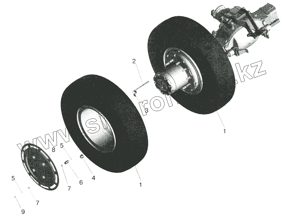 Каталог запасных частей к технике: МАЗ-5551 (2003). Установка задних колес