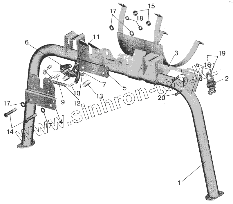 Каталог запасных частей к технике: МАЗ-5551 (2003). Запорный механизм кабины МАЗ-555102