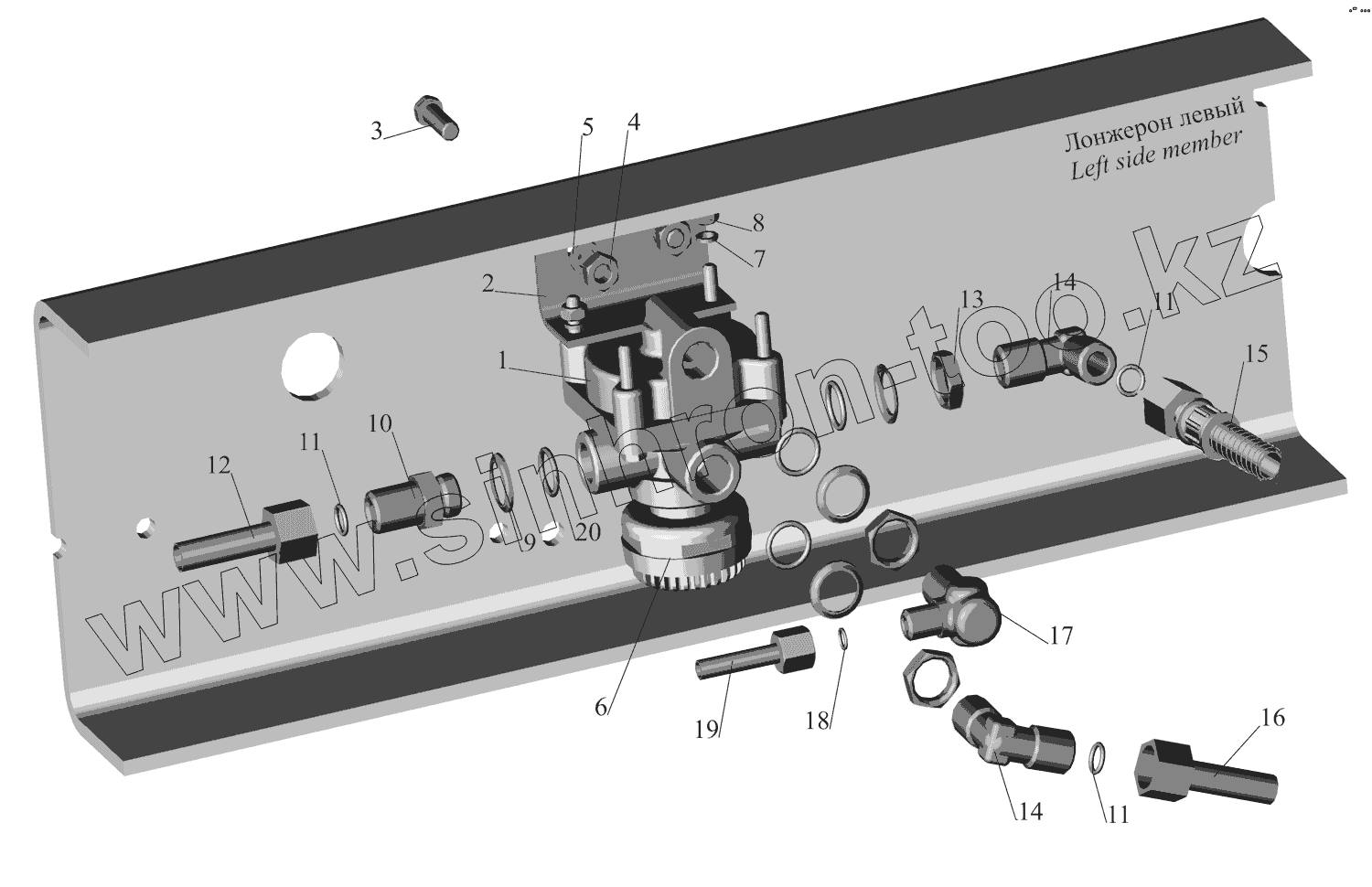 Каталог запасных частей к технике: МАЗ-630333. Крепление клапана ускорительного 643008-3518004