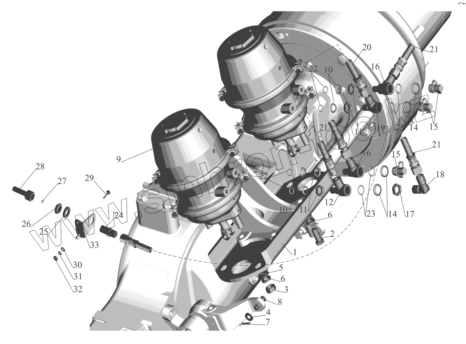 Каталог запасных частей к технике: МАЗ-630333. Крепление задних тормозных камер 5516-3519002