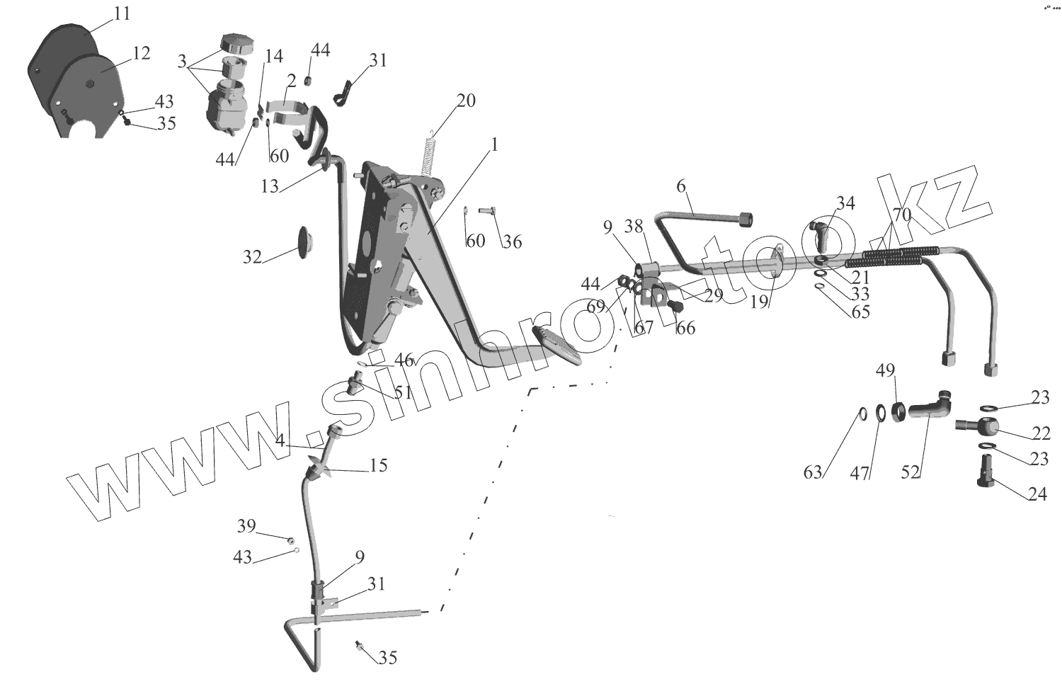 Каталог запасных частей к технике: МАЗ-630333. Механизм управления сцеплением 64229-1600005-040