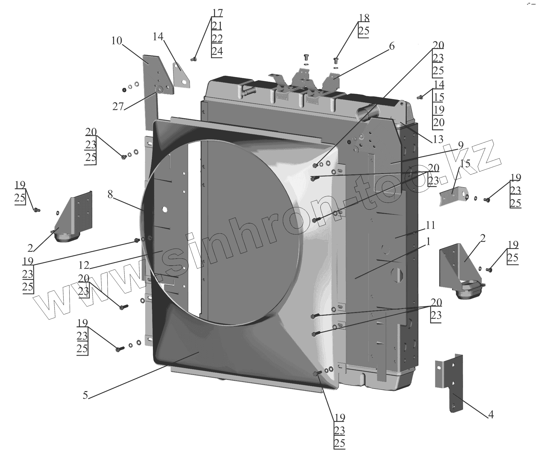 Каталог запасных частей к технике: МАЗ-630333. Радиатор с кожухом 533632-1301009-001