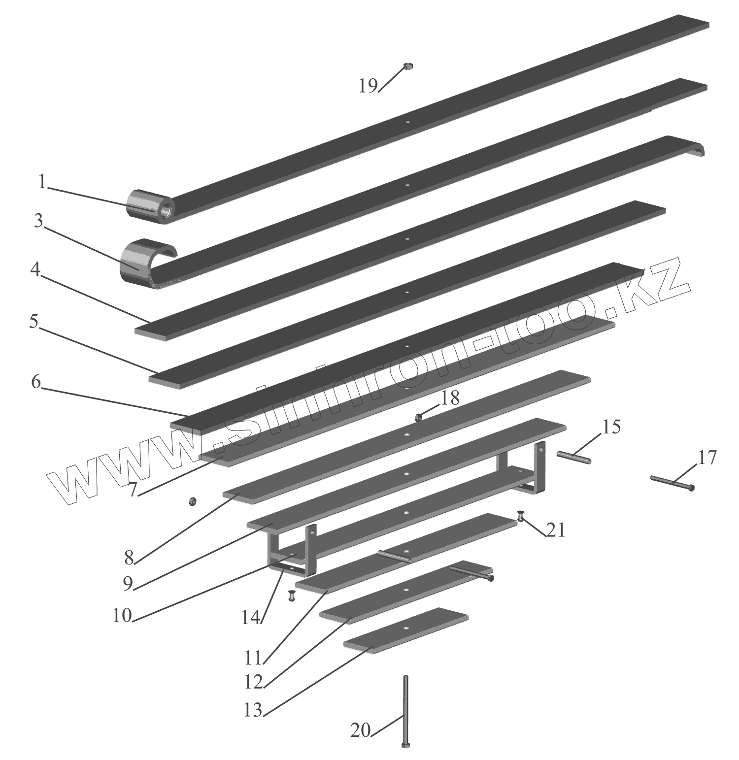 Каталог запасных частей к технике: МАЗ-630333. Рессора передняя 642208-2902012-001