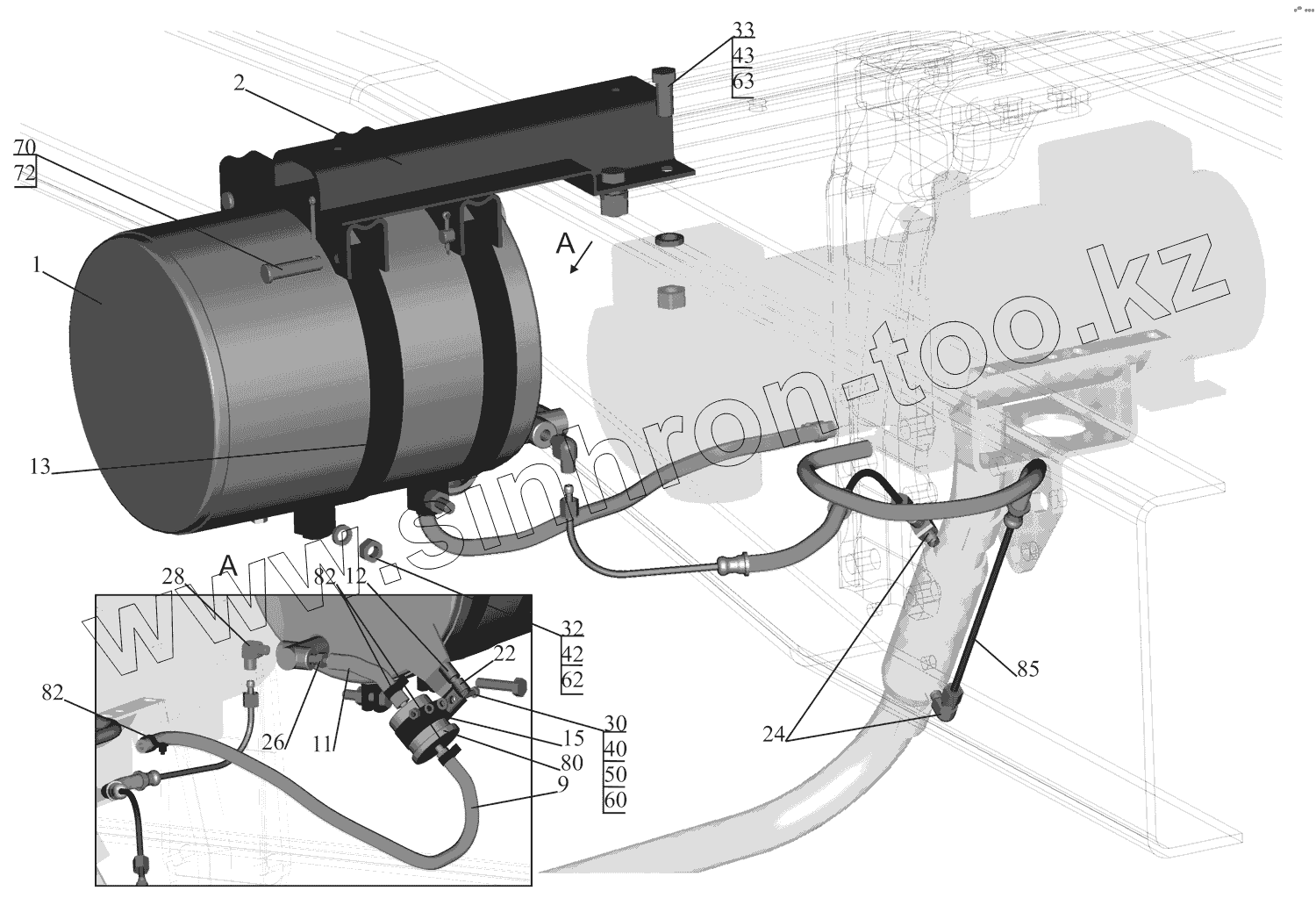 Каталог запасных частей к технике: МАЗ-630333. Топливопроводы подогревателя 53362-1015004