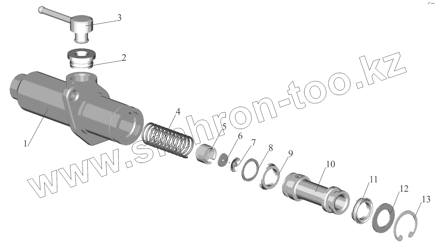 Каталог запасных частей к технике: МАЗ-630333. Цилиндр подпедальный 6430-1602510