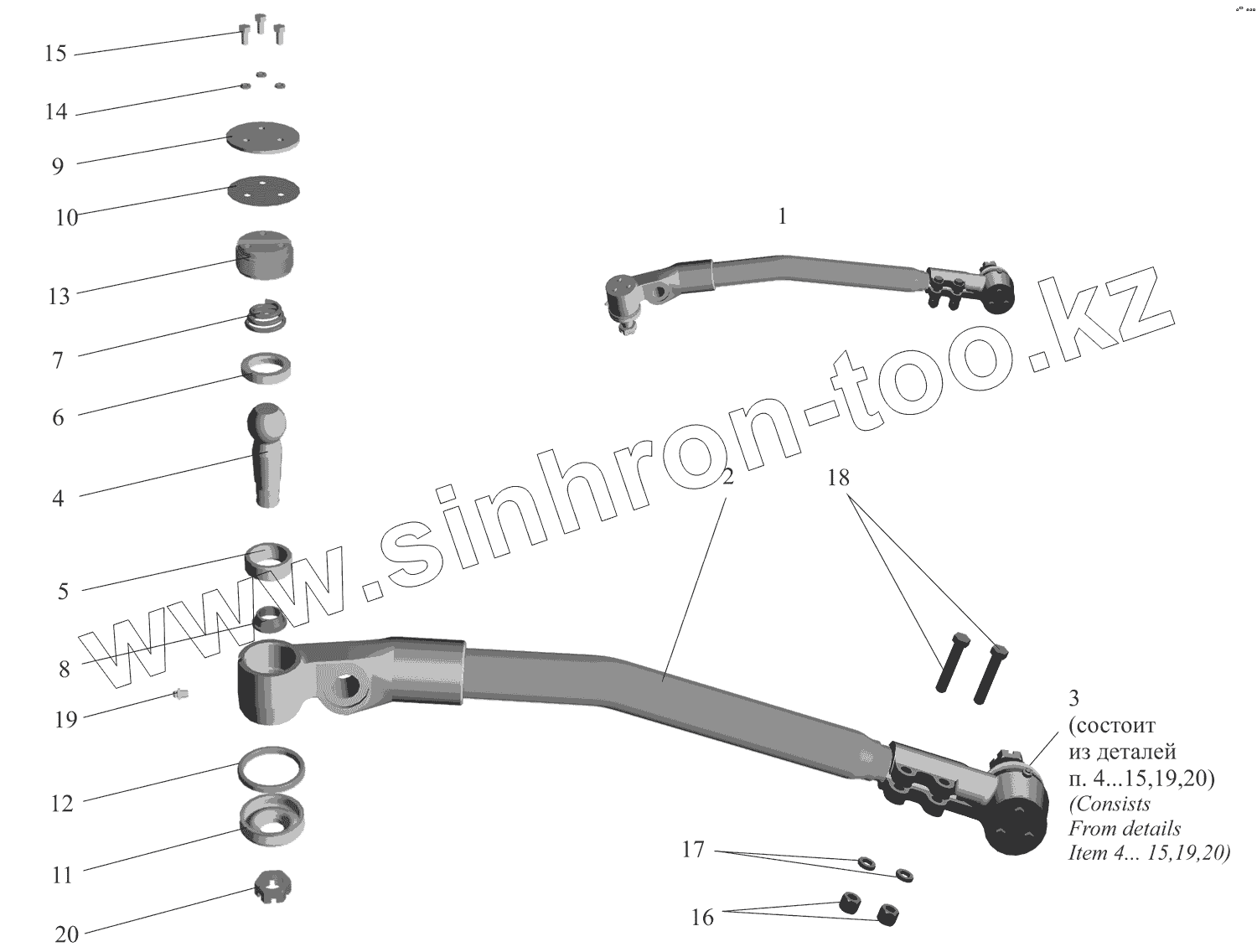 Каталог запасных частей к технике: МАЗ-630333. Tяга продольная 64221-3003010