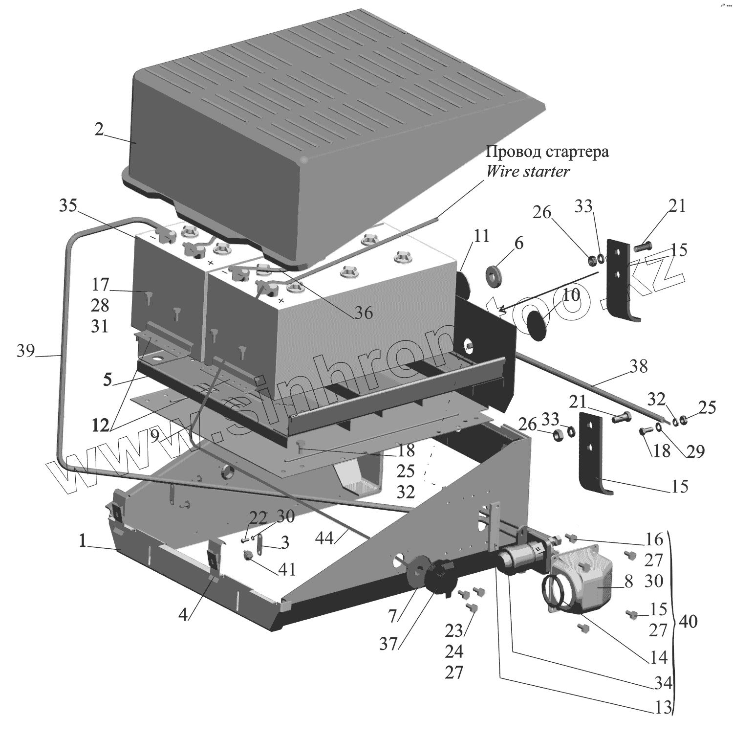 Каталог запасных частей к технике: МАЗ-630333. Установка аккумуляторных батарей 551605-3700008