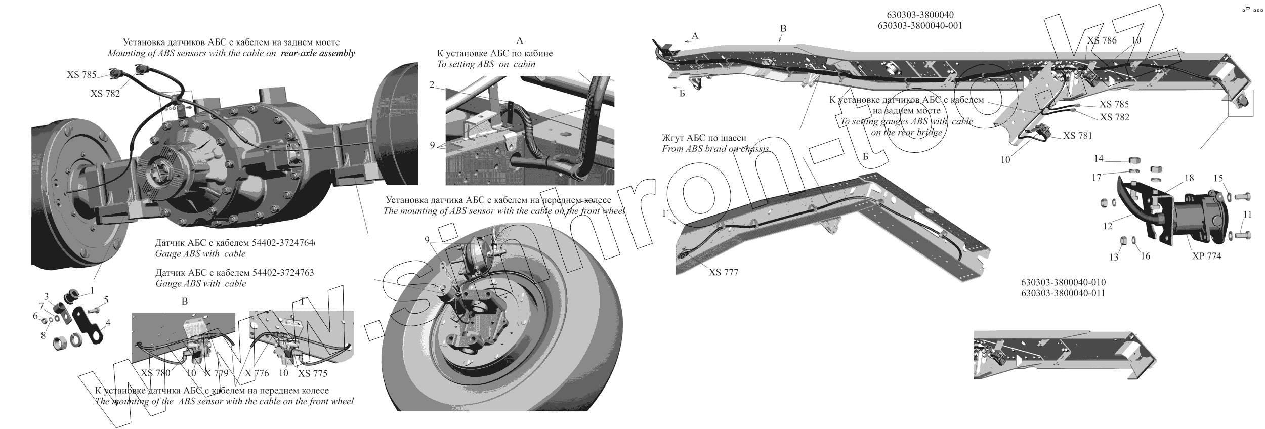 Каталог запасных частей к технике: МАЗ-630333. Установка электрооборудования АБС 630303-3800040