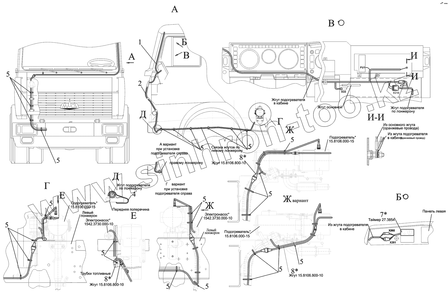 Каталог запасных частей к технике: МАЗ-630333. Установка электрооборудования подогревателя 64221-3700085