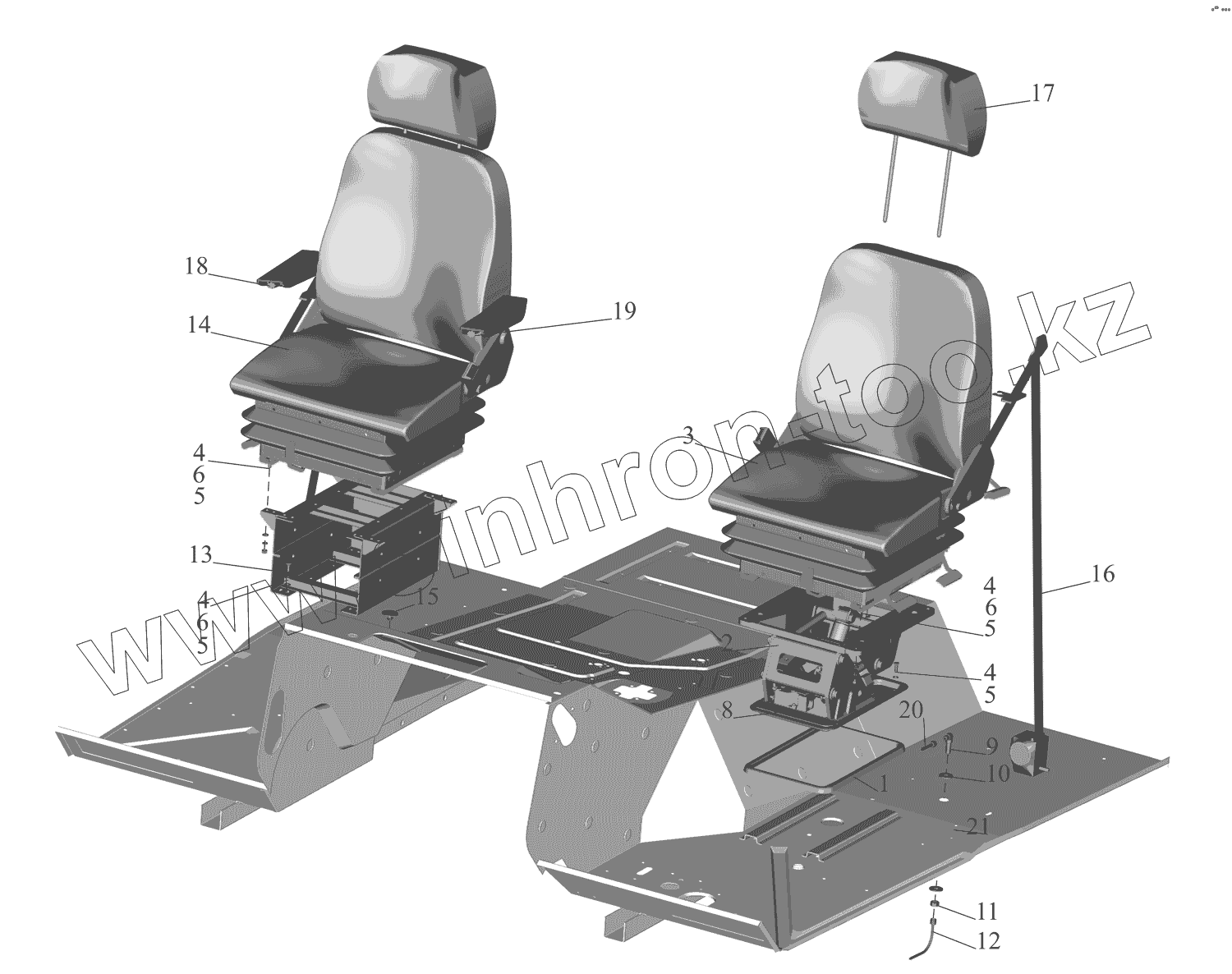 Каталог запасных частей к технике: МАЗ-630333. Установка и пневмопитание сидений 5433-6800006
