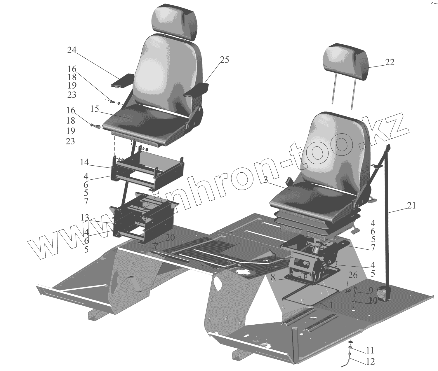 Каталог запасных частей к технике: МАЗ-630333. Установка и пневмопитание сидений 5551-6800006-040