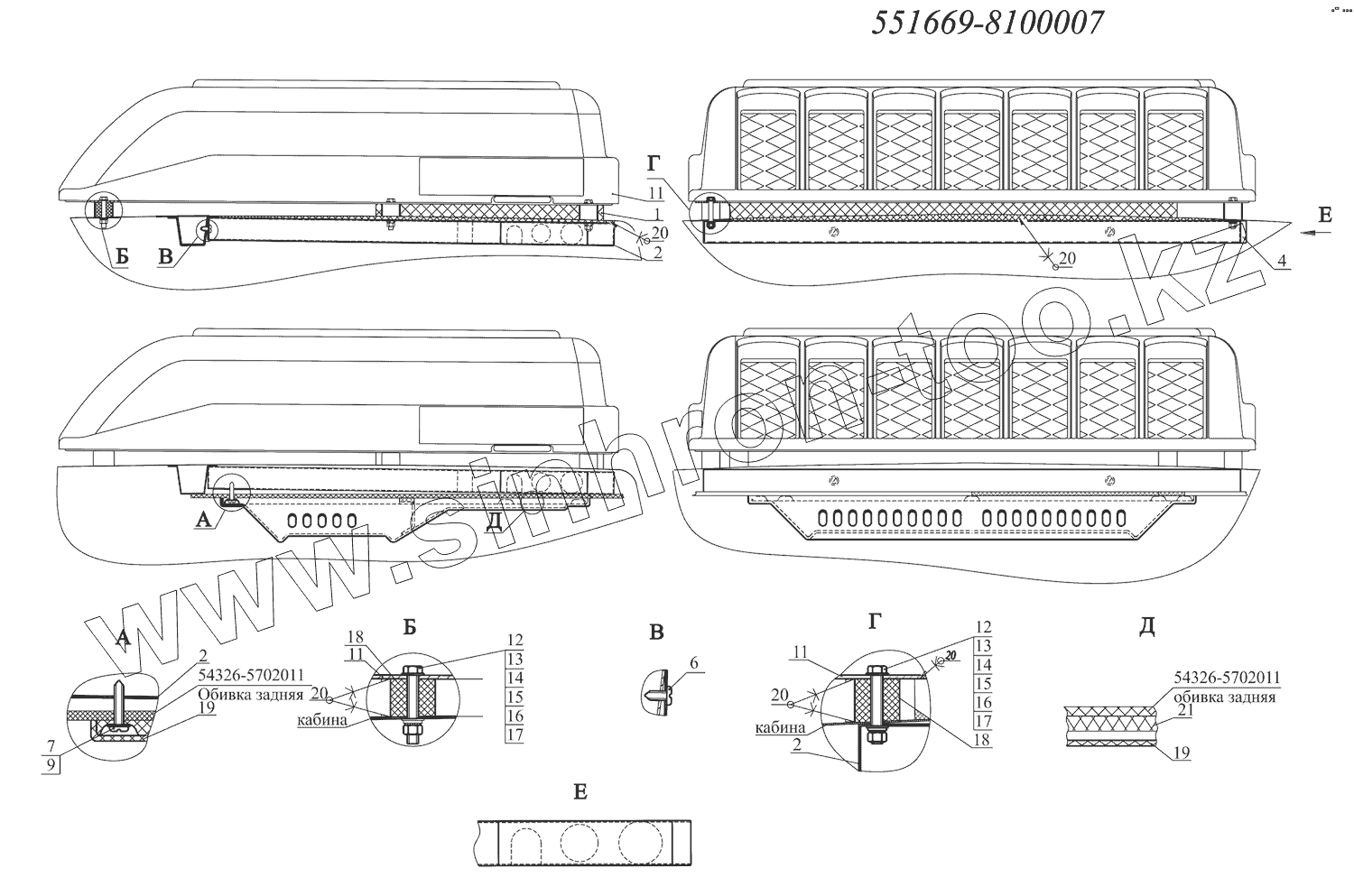 Каталог запасных частей к технике: МАЗ-630333. Установка накрышного блока кондиционера