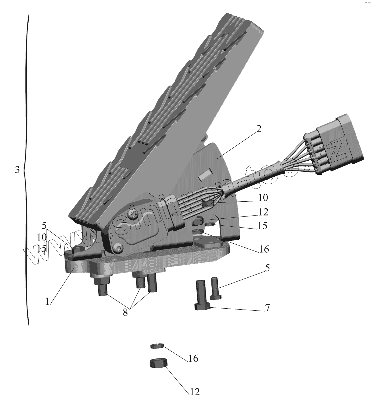 Каталог запасных частей к технике: МАЗ-630333. Установка педали управления двигателем 437143-1108002